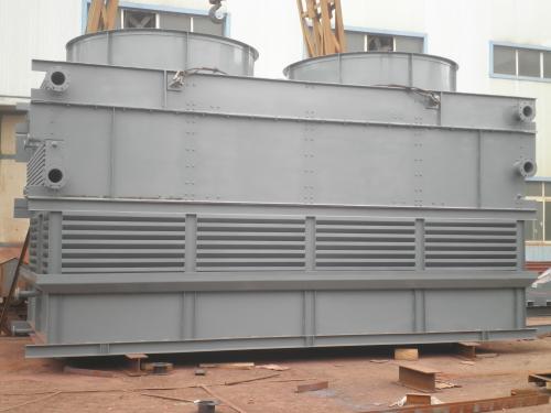 蒸發(fā)式空冷器是將管式換熱器置于塔內(nèi),通過(guò)流通的空氣、噴淋水與循環(huán)水的熱交換保證降溫效果。由于是閉式循環(huán),其能夠保證水質(zhì)不受污染,很好的保護(hù)了主設(shè)備的高效運(yùn)行,提高了使用壽命。外界氣溫較低時(shí),可以停掉噴淋水系統(tǒng),起到節(jié)水效果。推著國(guó)家節(jié)能減排政策的實(shí)施和水資源的日益匱乏,近幾年密閉式冷卻塔在鋼鐵冶金、電力電子、機(jī)械加工、空調(diào)系統(tǒng)等行業(yè)得到了廣泛的應(yīng)用。